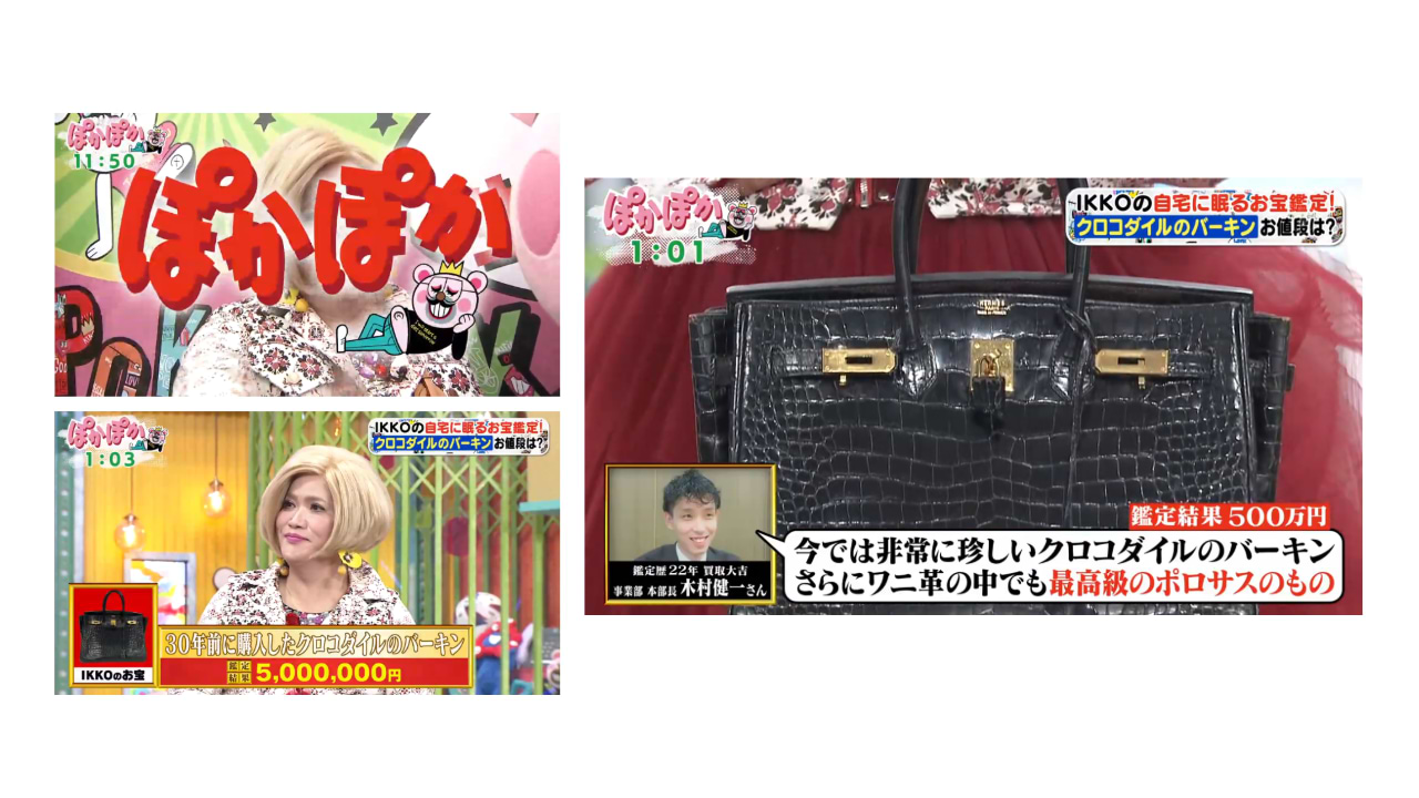3月17日(月)放送 フジテレビ『ぽかぽか』のコーナー内で、 弊社鑑定士・木村がIKKOさんのバーキンを査定させていただきました。 これからもお客様満足度の向上に向けて邁進してまいりますので、 変わらぬご愛顧を賜りますようお願い申し上げます。 この記事の投稿者:買取大吉 フランチャイズ事業部金、ジュエリー、時計、バッグなど、リユース品の買取を専門に行っている「買取大吉」のフランチャイズ事業部。日本全国に1000店舗以上を展開する組織力と、店舗継続率96.4%を誇る知見をもとに、フランチャイズ事業に関する様々な情報を発信いたします。この投稿者の記事を見る