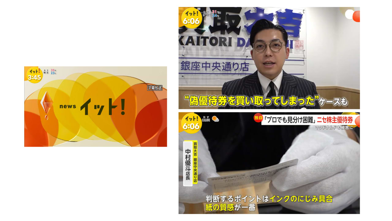 番組では、ニセ株主優待券の流通について買取店の現状を取材協力いたしました。