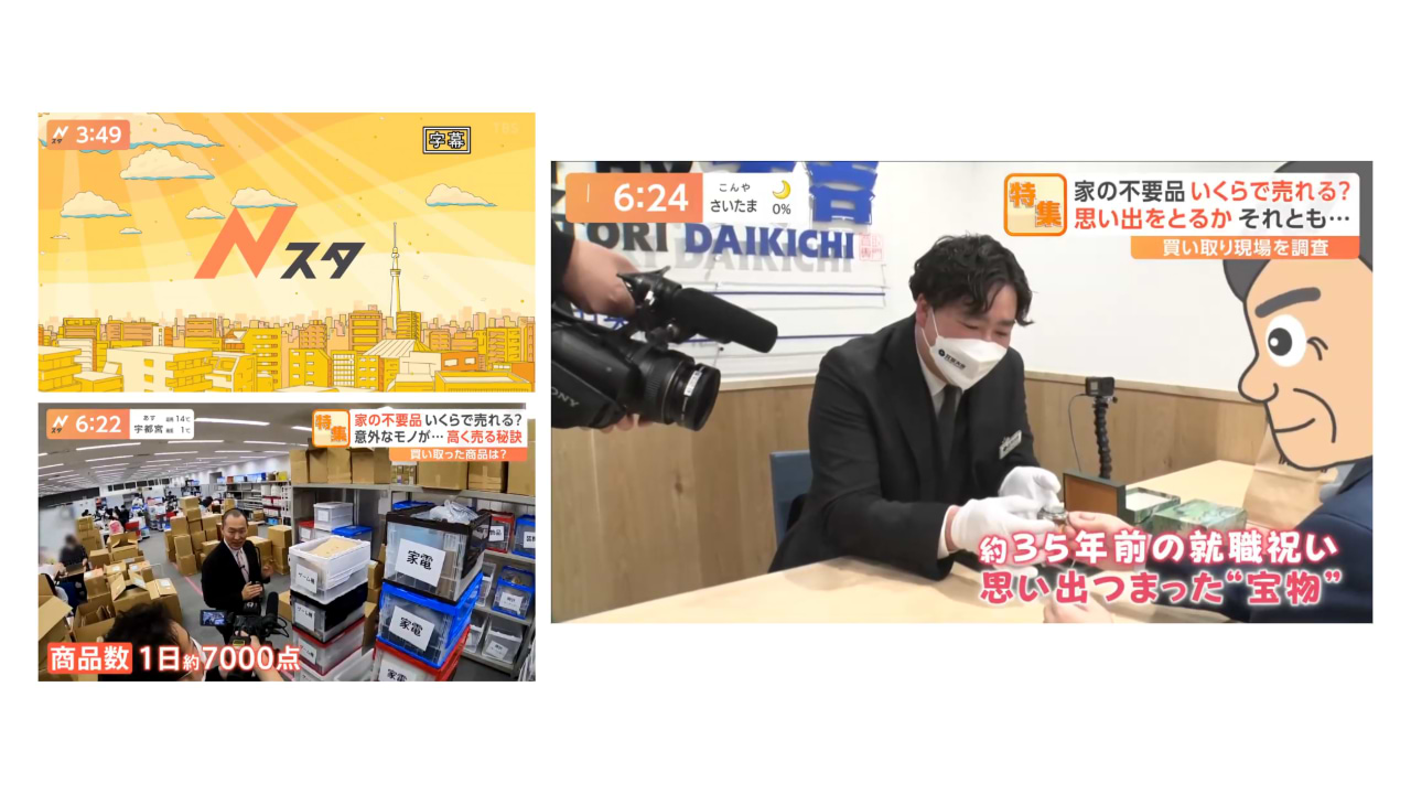 3月14日(金)放送 TBS『Nスタ』で、 「買取大吉」銀座中央通り店での買取の様子をご紹介いただきました。 VTRには、弊社鑑定士・林が出演いたしました。 これからもお客様満足度の向上に向けて邁進してまいりますので、 変わらぬご愛顧を賜りますようお願い申し上げます。 この記事の投稿者:買取大吉 フランチャイズ事業部金、ジュエリー、時計、バッグなど、リユース品の買取を専門に行っている「買取大吉」のフランチャイズ事業部。日本全国に1000店舗以上を展開する組織力と、店舗継続率96.4%を誇る知見をもとに、フランチャイズ事業に関する様々な情報を発信いたします。この投稿者の記事を見る